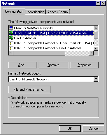 configure your system, you may be prompted for the Windows 95 distribution media. Have the