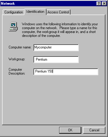 you can enter your workgroup name. If you use the workgroup name of Pentium, your