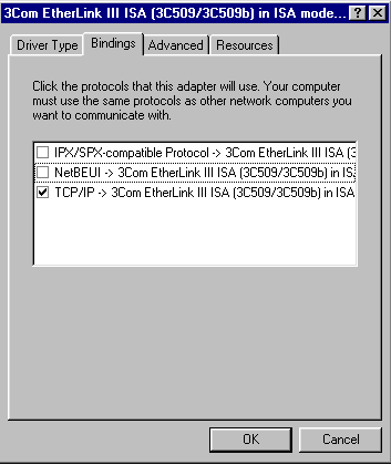 the bindings tab. Ensure that TCP/IP is checked. The other protocols are not