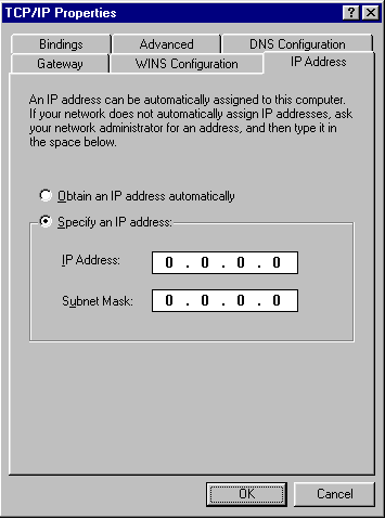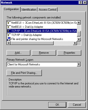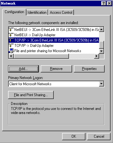 It is assumed that you have the TCP/IP protocol installed on your Windows95 system. If