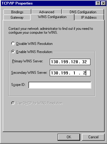 and secondary WINS servers available. Make sure the "enable WINS resolution"